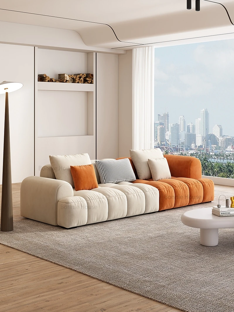 【2024年新作】クリームクラウド風ソファ:小スペース向け―スタイリッシュでミニマル―インフルエンサー注目の最新デザイン布製直列ソファ