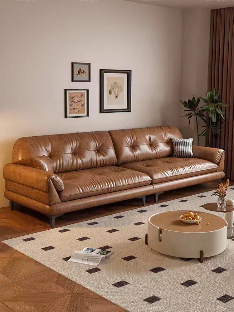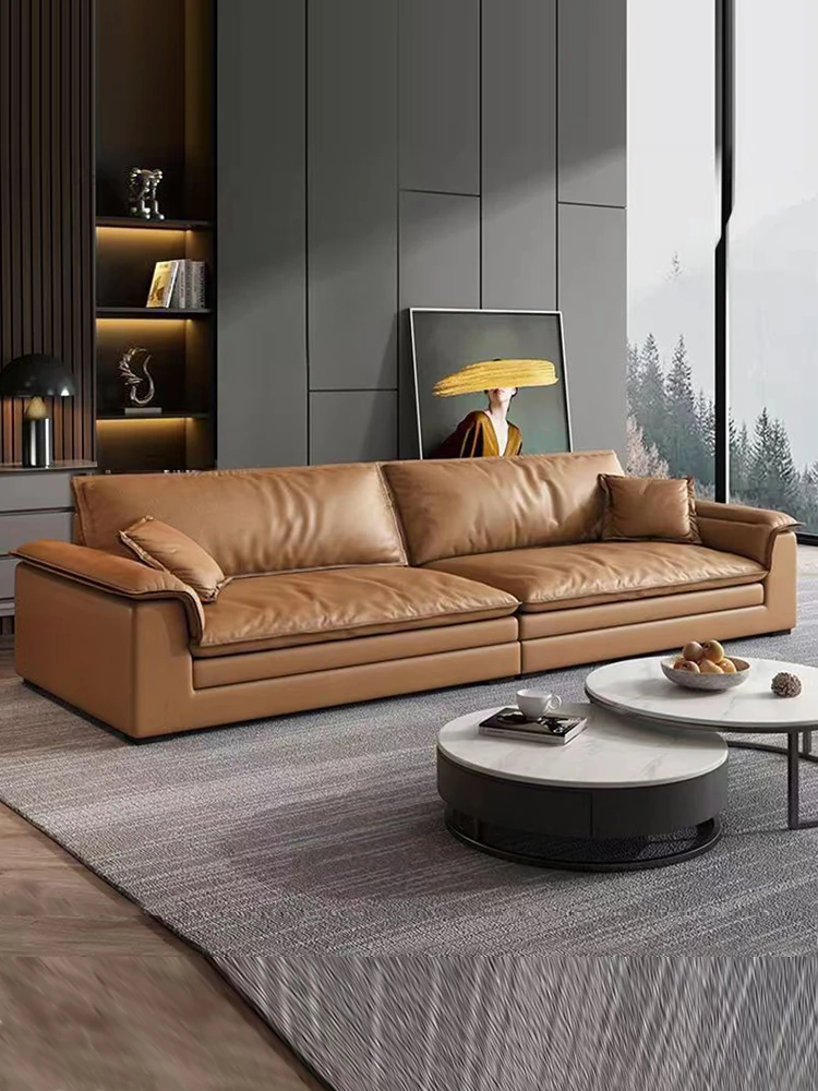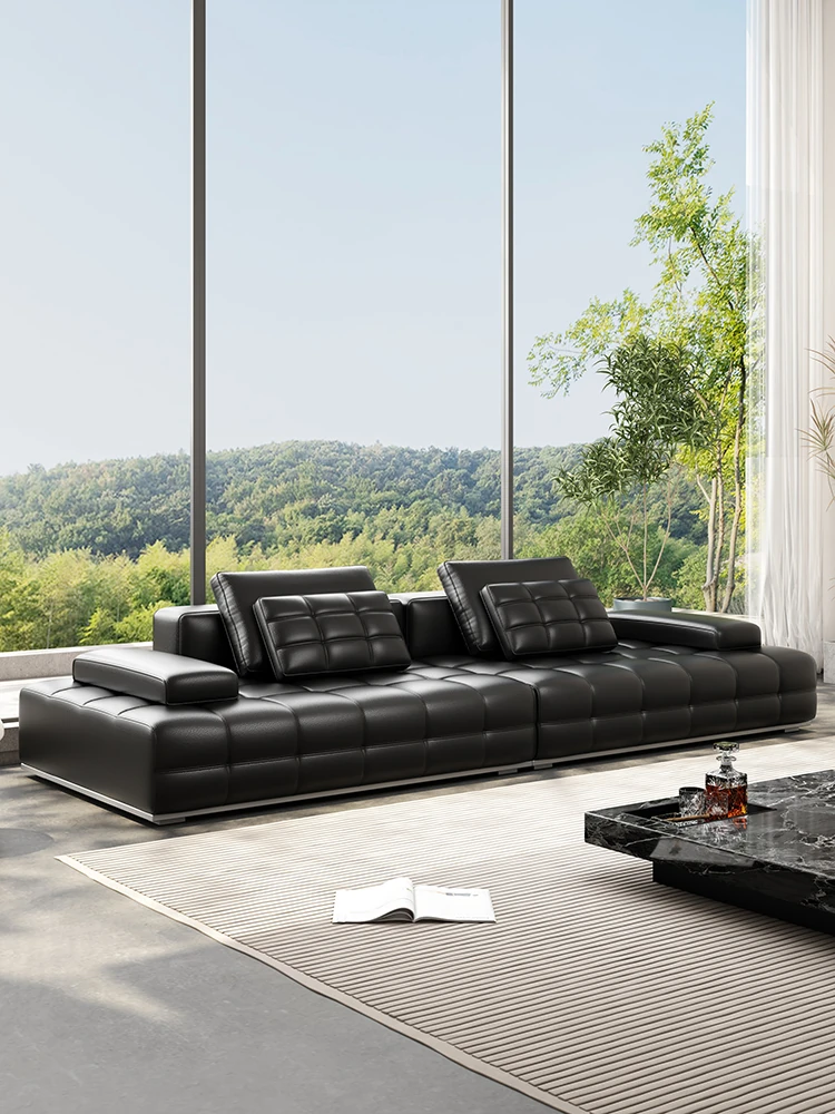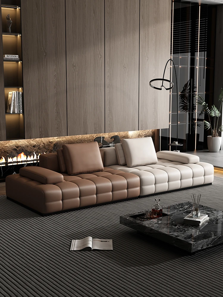 【2024年新作】ラウレンス本革ソファー - イタリアンミニマリストデザイン、豪邸&大型リビング用ストレートコンビネーションソファー。魅力的な新しいスタイルでリビングを格調高く演出!