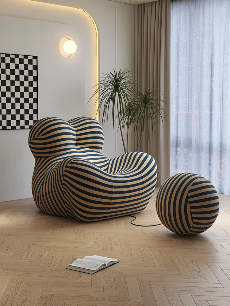 【デザイナーズ】ドーナツ型シングルソファ - トレンド感溢れるリビングにぴったりのモダンでシンプルなクリエイティブ&リラックスソファ!