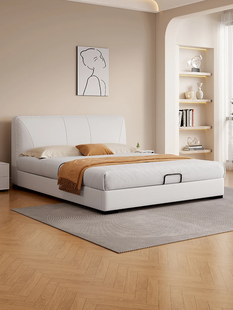 Creamy Tech Fabric Bed - 1.8/1.5m Modern Upholstered Fabric Bed for Master Bedroom, Stylish Double Bed, Popular on Social Media