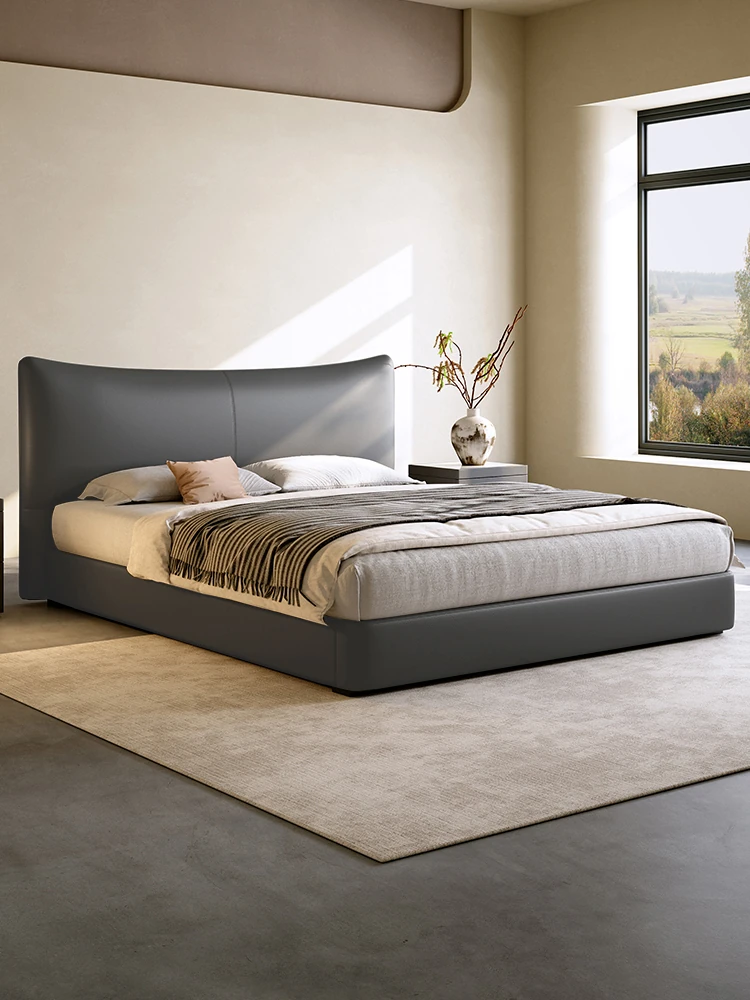 Modern Minimalist Genuine Leather Bed for Master Bedroom (1.5/1.8m) - Luxurious Comfort & Style