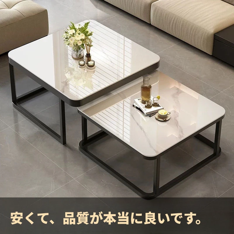 2025新作!モダンミニマリズムの岩板製コーヒーテーブル - リビングに最適な四角形デザインで、小さなスペースにもぴったり!スタイリッシュなテレビキャビネットとしても活用可能。おしゃれで機能的な空間を演出します。