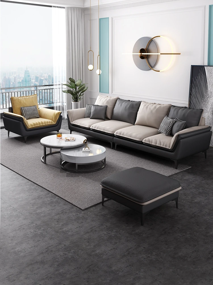 Italian Minimalist Luxury Genuine Leather and Fabric Sofa for Small Living Rooms - Modern and Simple Design, Perfect for Couples and Families with Limited Space