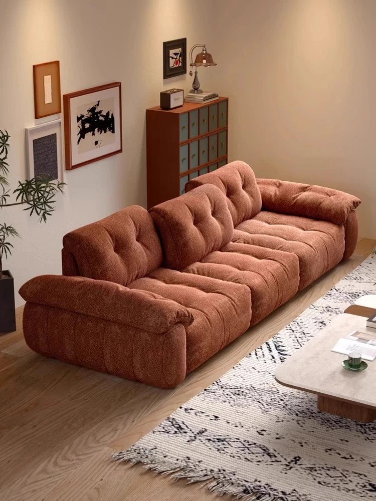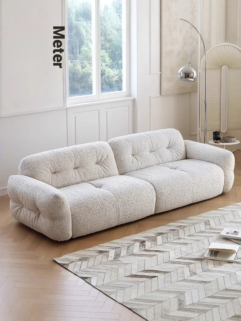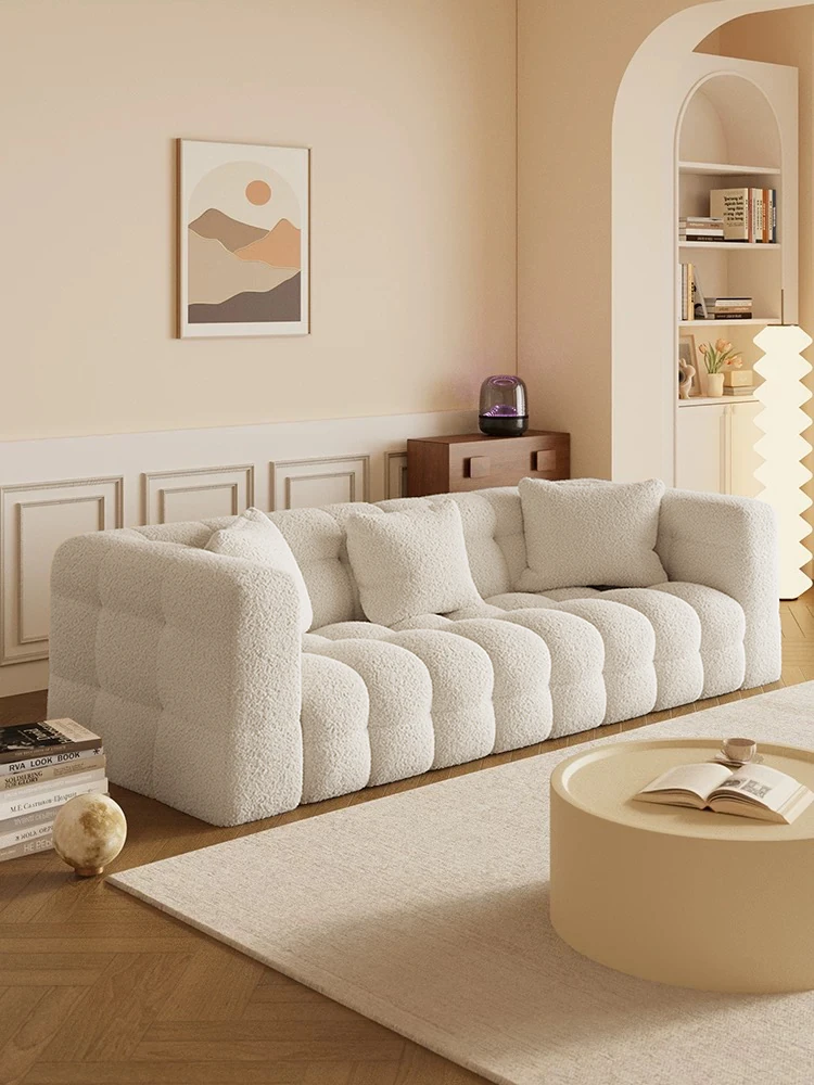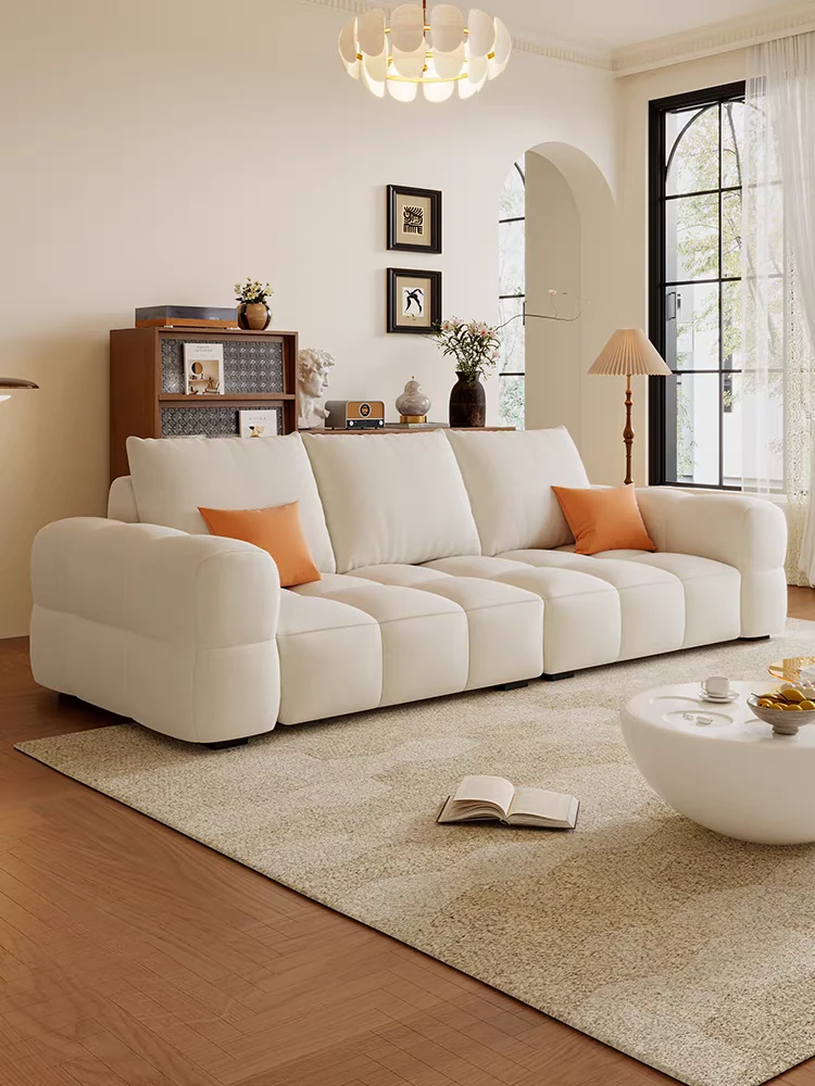 French Creamy Marshmallow Puff Fabric Sofa for Small Living Rooms - 2025 New Modern Minimalist Design