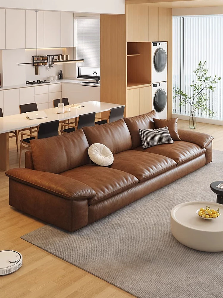 2025 New Italian Minimalist Genuine Leather Sofa for Small Spaces - Modern Simple Design, Scratch-Resistant Fabric, Comfortable 3-Seater for Your Living Room