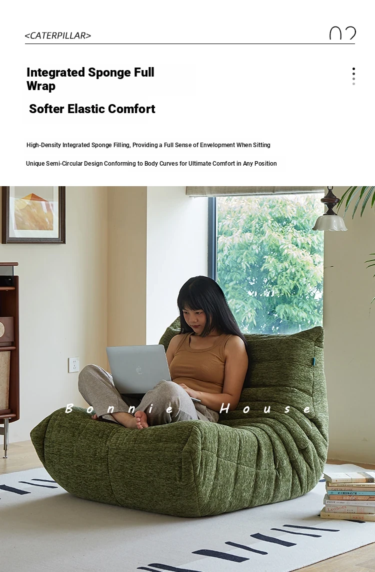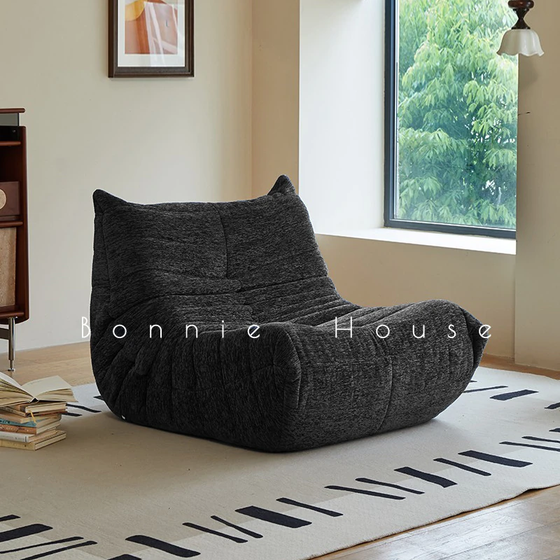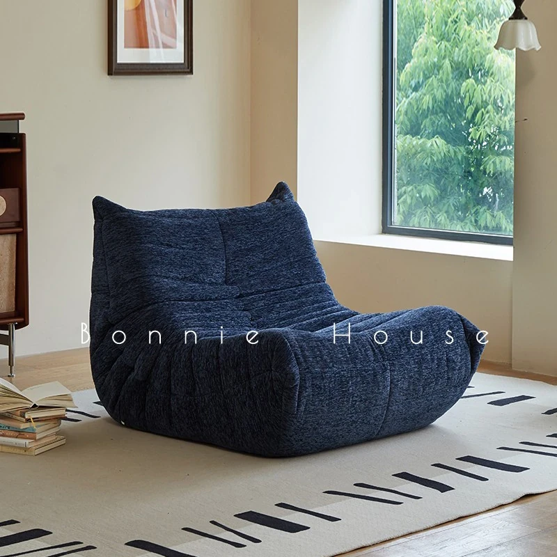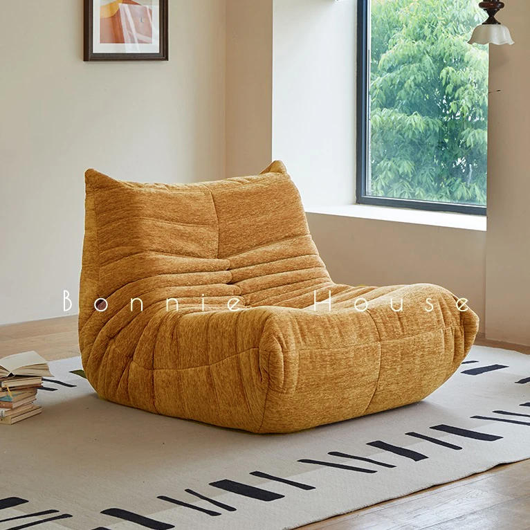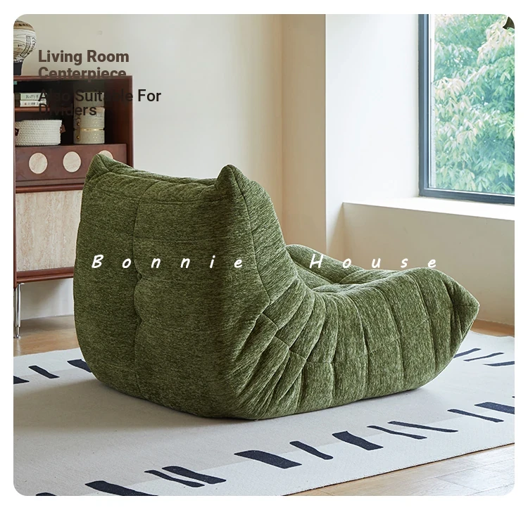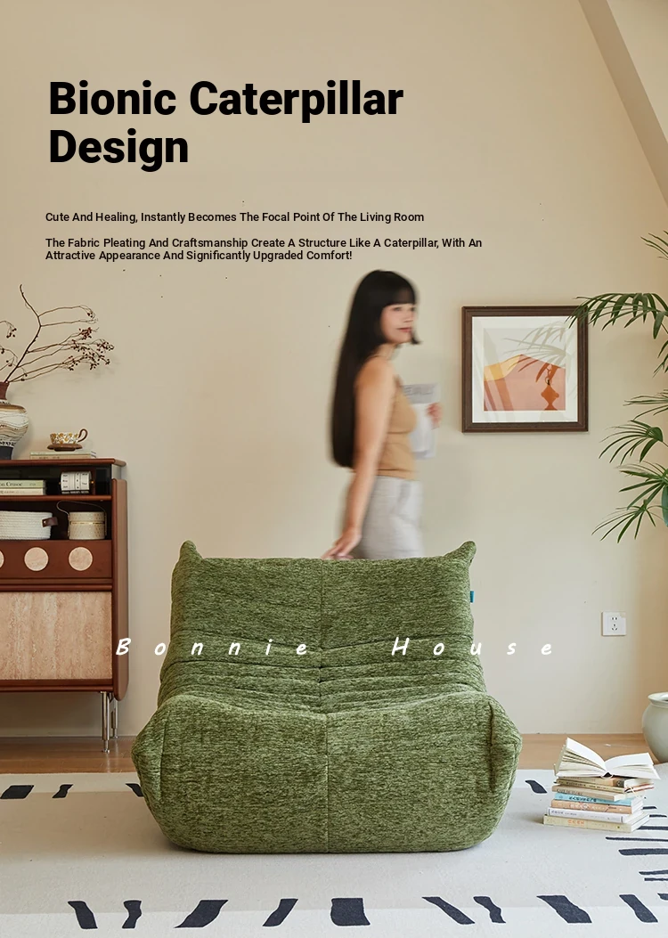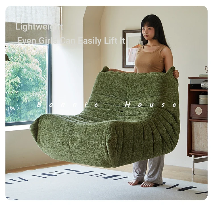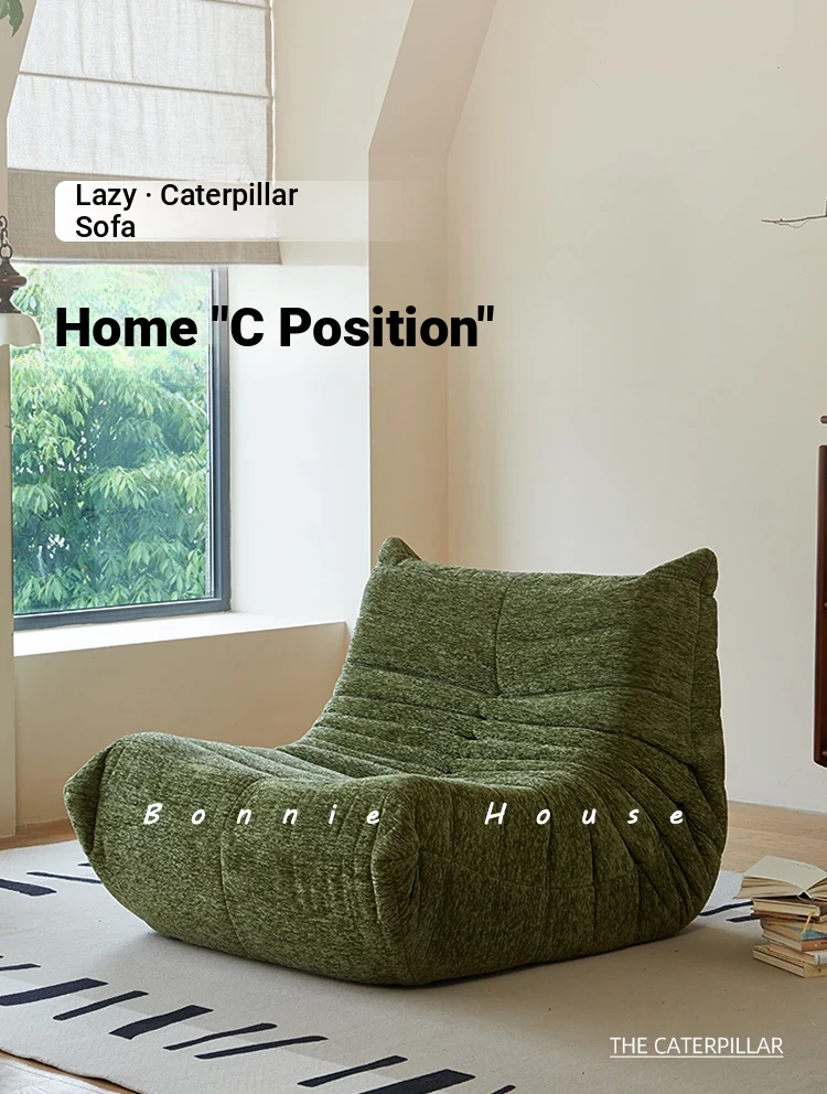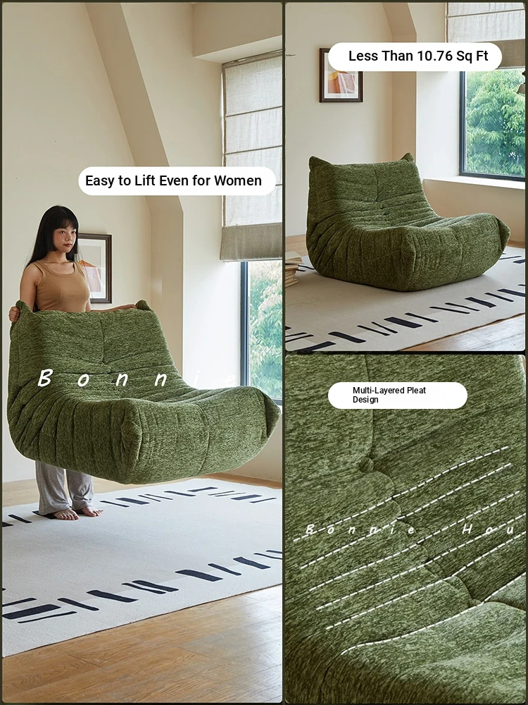 Chic Chenille Caterpillar TOGO Sofa - Original Design for Living Room, Lazy Cream Armchair with Reclining and Sleeping Features, Perfect for Relaxing on the Balcony or Solo Comfort.