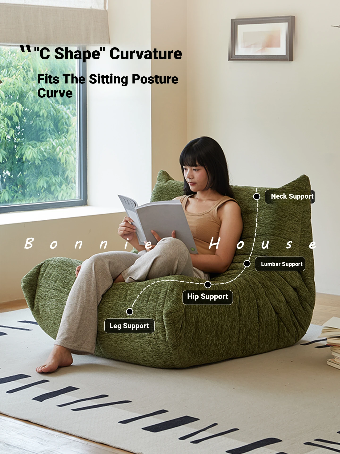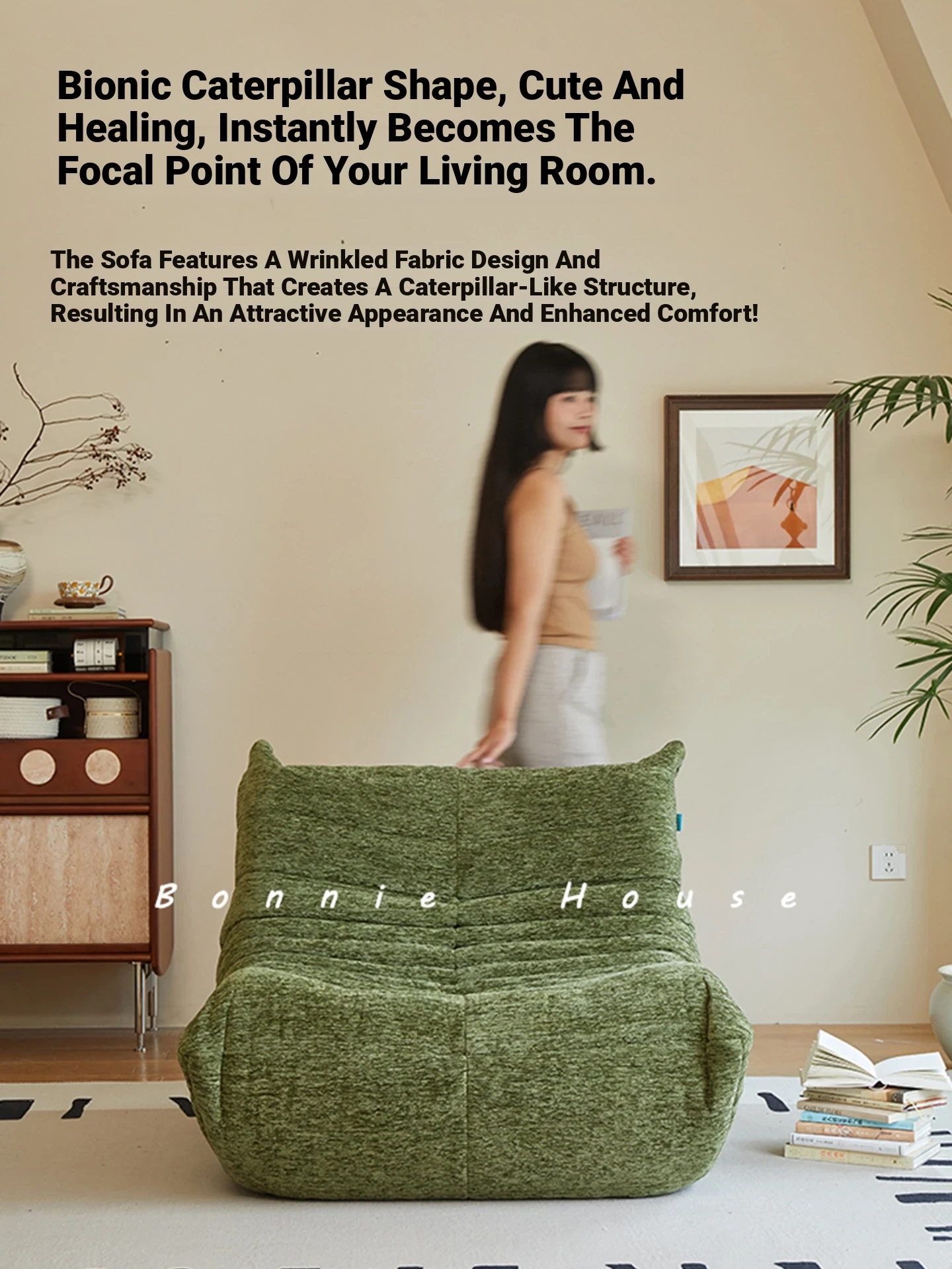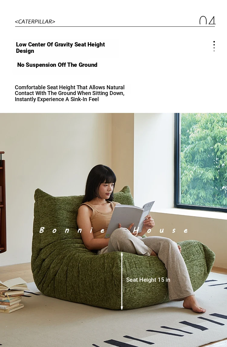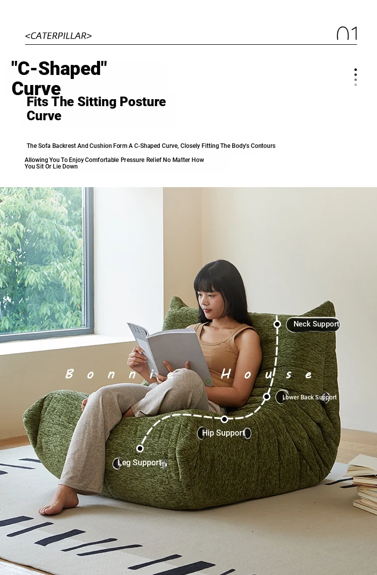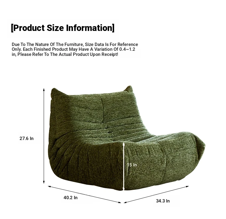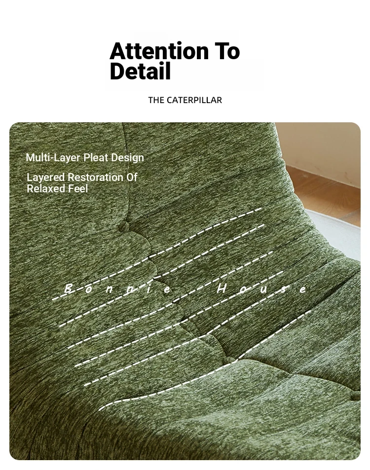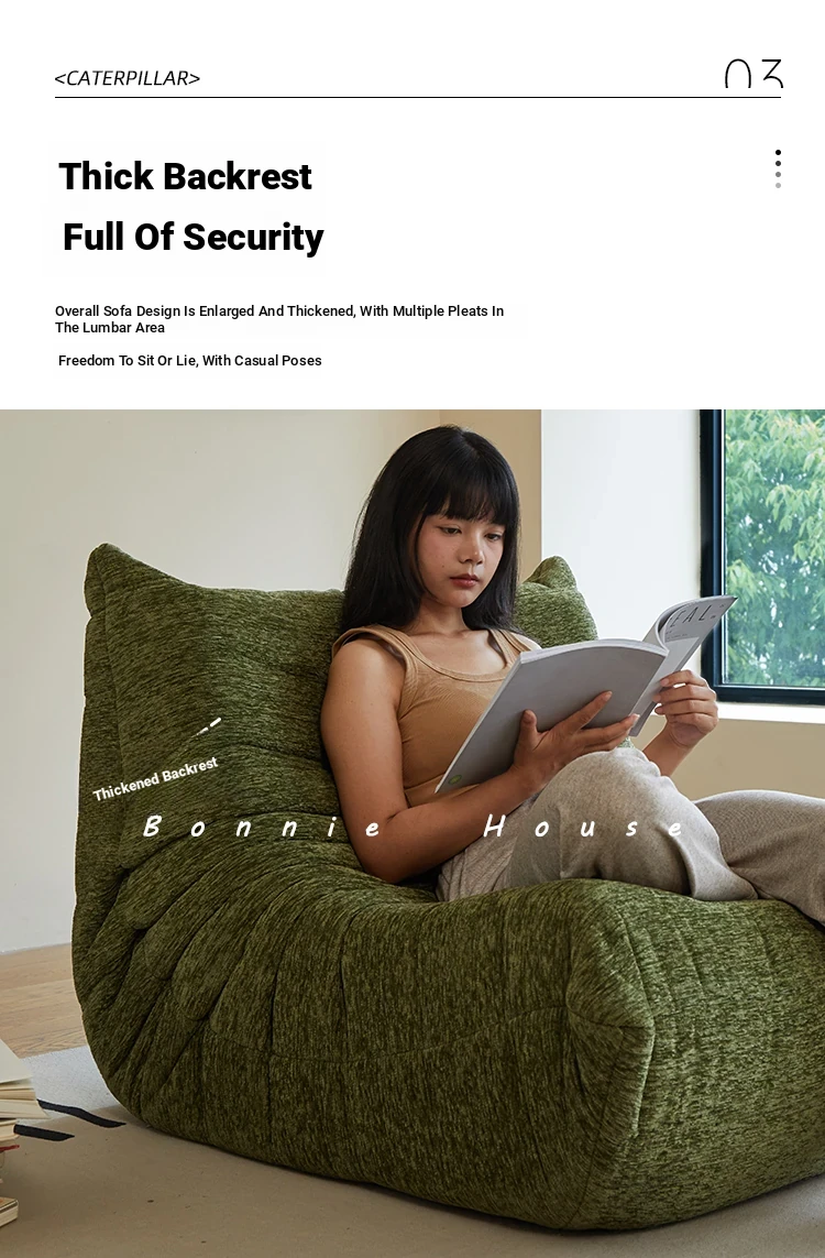 Chic Chenille Caterpillar TOGO Sofa - Original Design for Living Room, Lazy Cream Armchair with Reclining and Sleeping Features, Perfect for Relaxing on the Balcony or Solo Comfort.