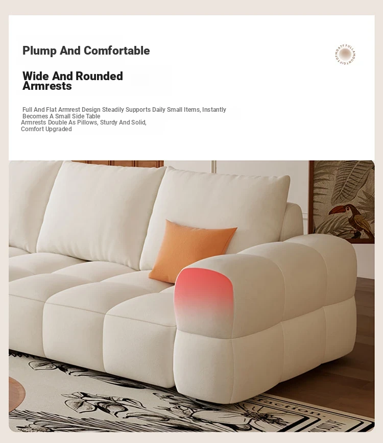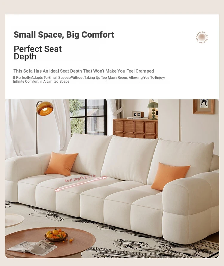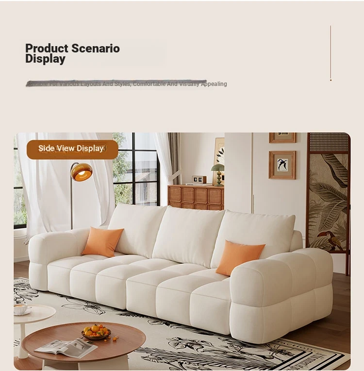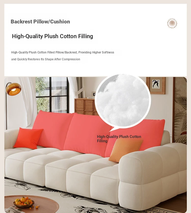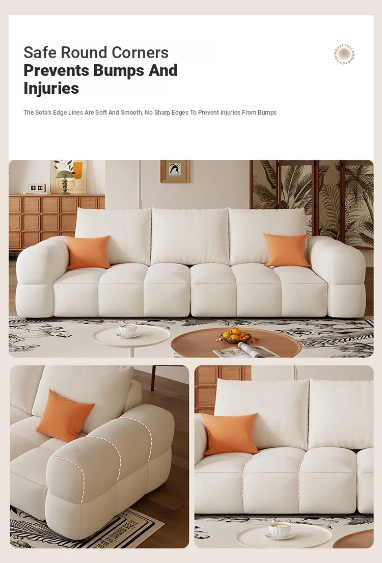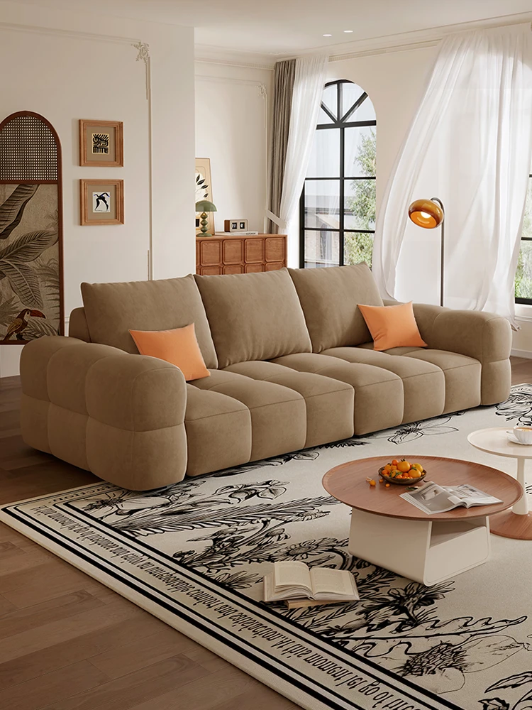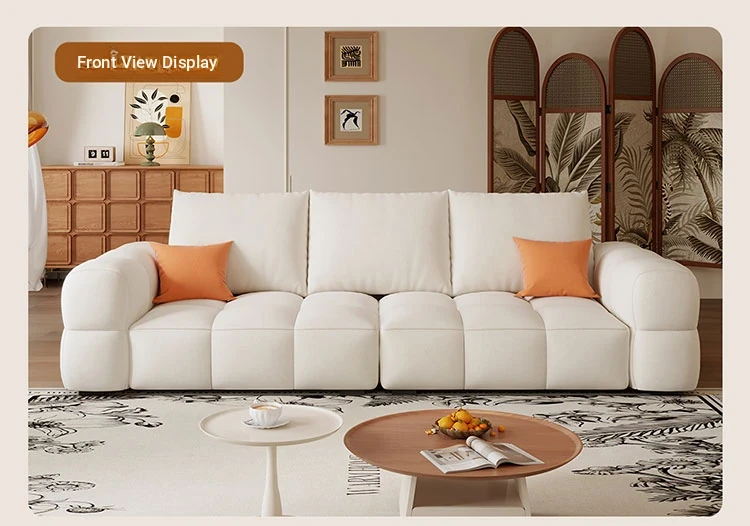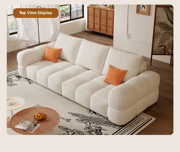 French Creamy Marshmallow Puff Fabric Sofa for Small Living Rooms - 2025 New Modern Minimalist Design