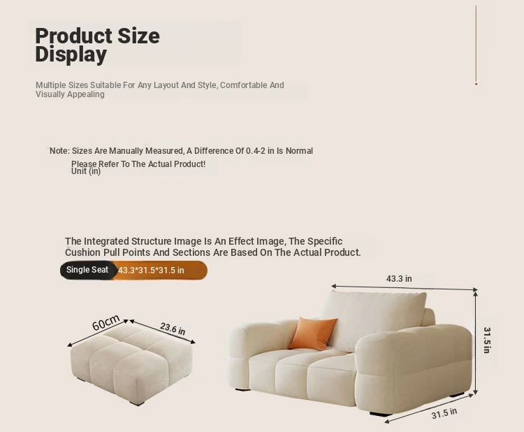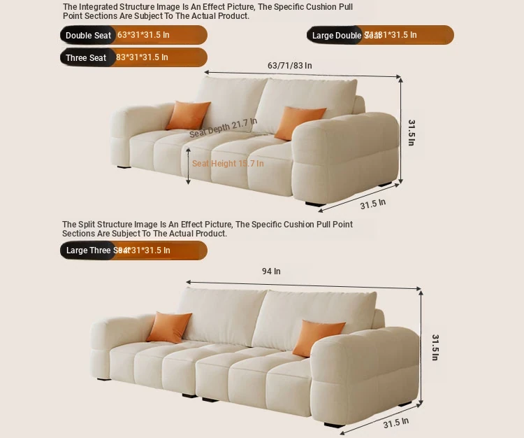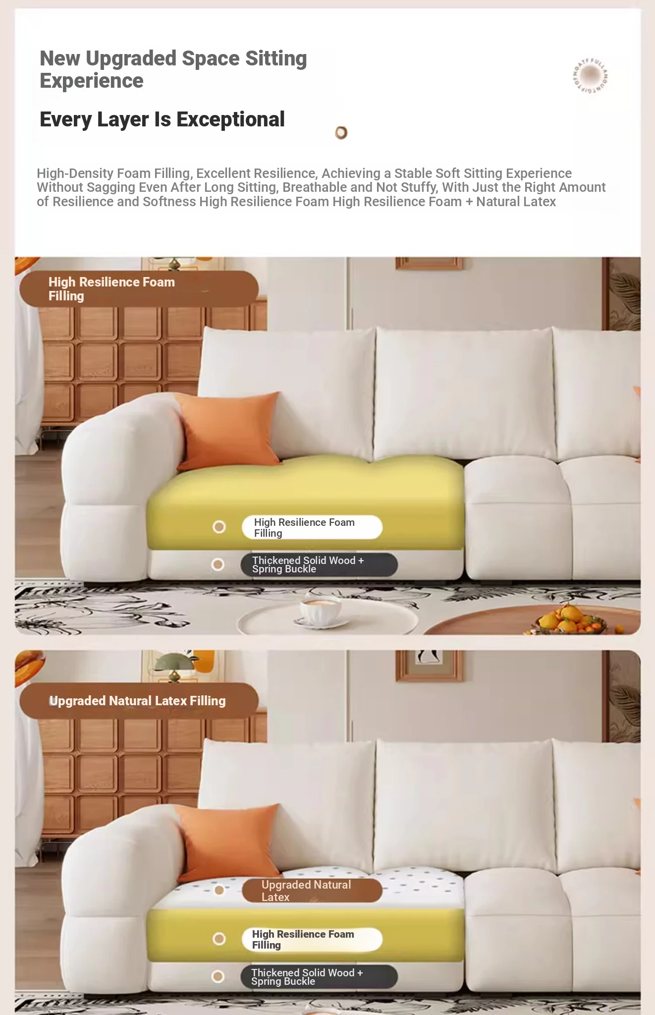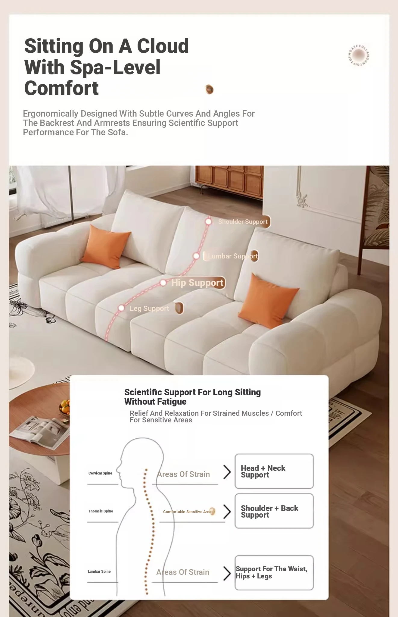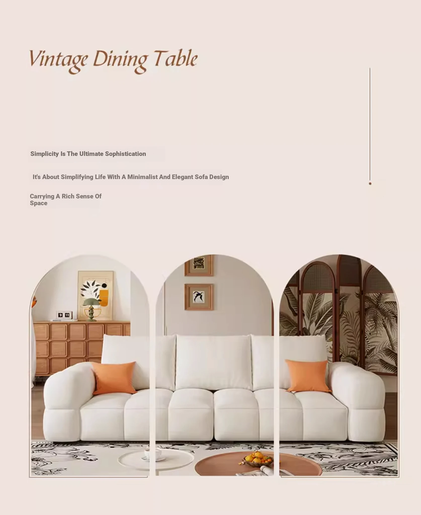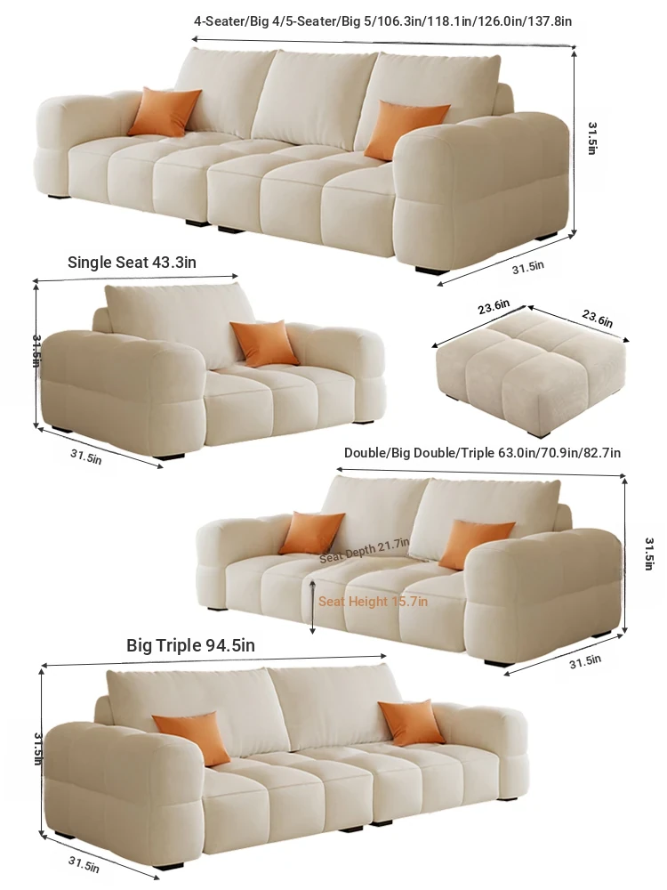 French Creamy Marshmallow Puff Fabric Sofa for Small Living Rooms - 2025 New Modern Minimalist Design