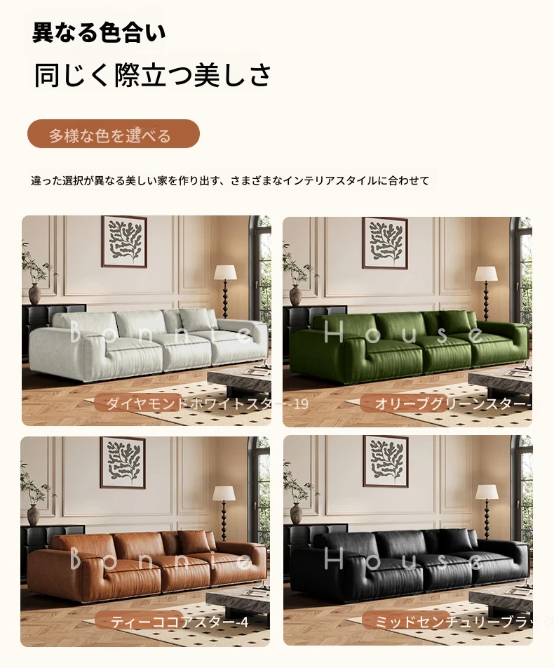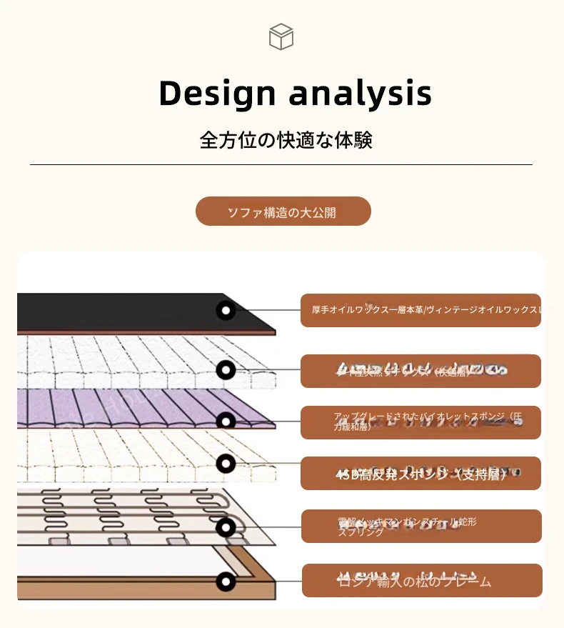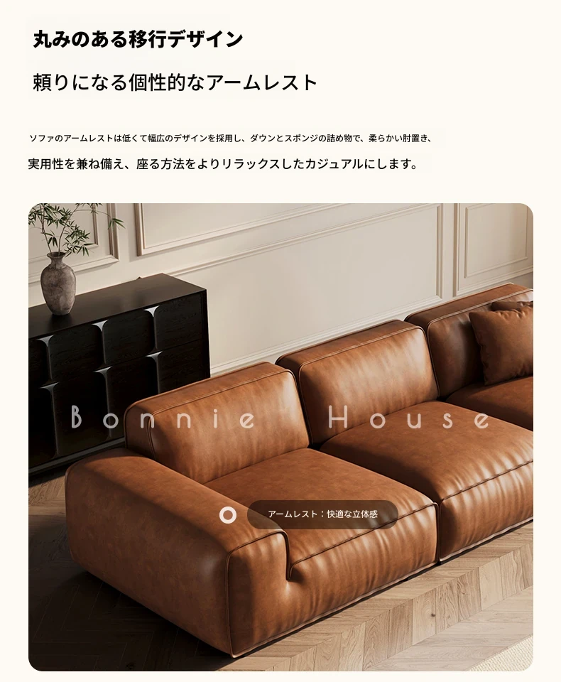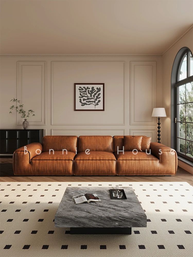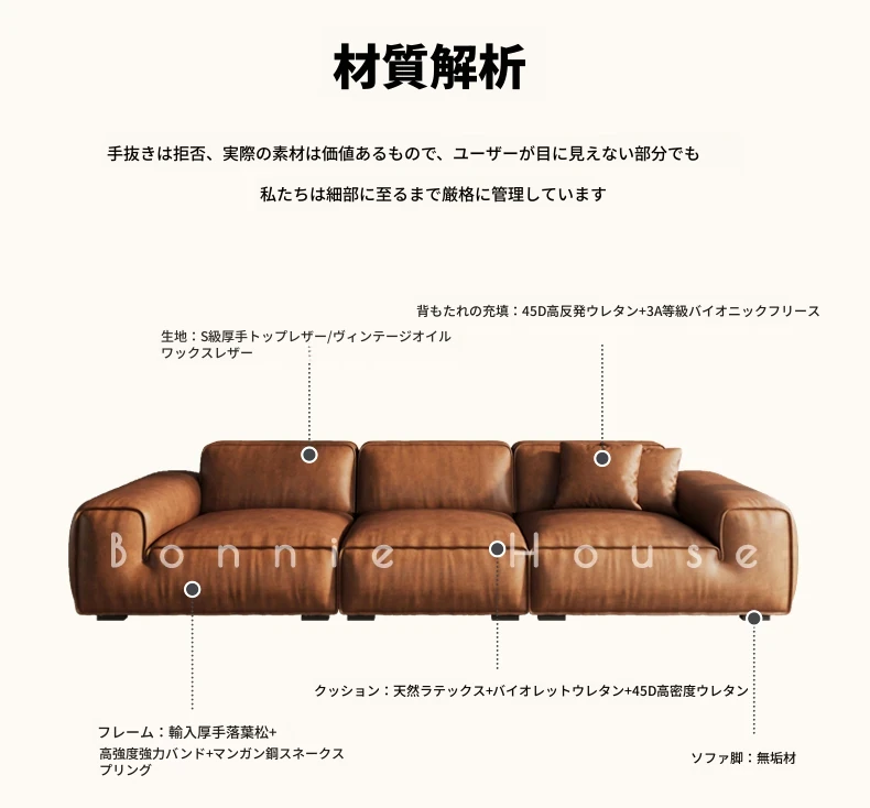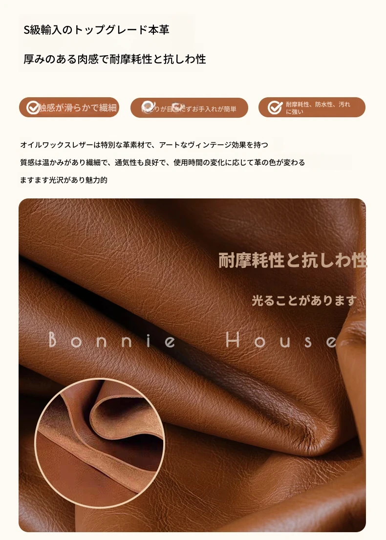 フレンチヴィンテージオイルワックスレザー大黒牛デザインリビングソファ - 深い座面で快適さ抜群、家族皆でくつろげる贅沢な空間を演出!